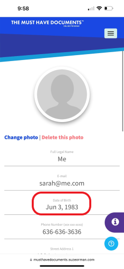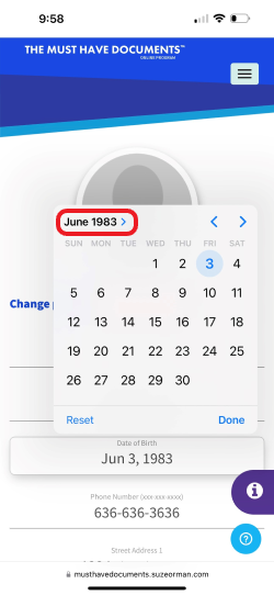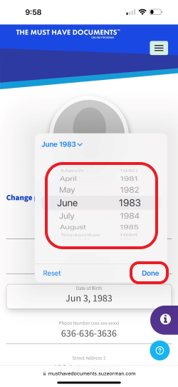 To update or change your Date of Birth within the Must Have Documents from your Apple phone or other mobile device please follow the steps below: