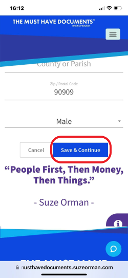 Step 7: Scroll to the bottom of the screen and tap Save & Continue to save your update